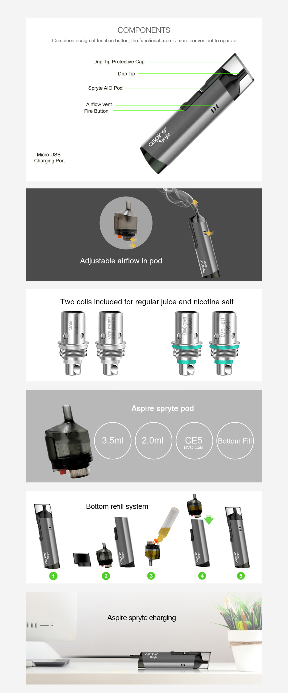 Diğer Özellikler: Aspire Spryte Aspire BVC (Bottom To Vertical) Olarak Da Bilinen Bir