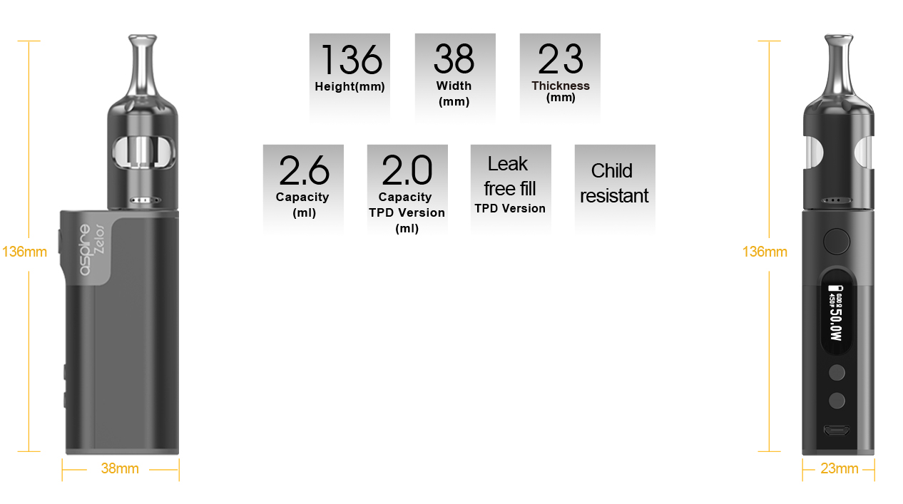 Aspire Zelos 2 50W Kit ile birlikte gelir