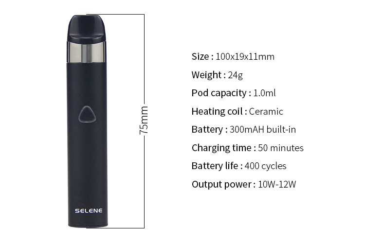 İnce kalem tarzı bir pod kiti olan ATVS Selene Pod Sistem Kiti,1 ml kapasite ve seramik bobin ile birlikte gelir. ATVS Selene Pod Kit,dahili 300mah pil ile çalışır ve 400 çevrimi destekleyebilir. Led ışık sayesinde sarjının ne kadar olduğunu görebilirsiniz. USB kablosu ile şarj edilebilir. Sadece 50 dakika yeterli. Hızlı şarj ve kullanımı kolaydır.Başlangıç seviyesi için oldukça uygun bir üründür.