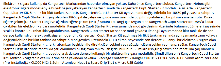 Kangertech Cupti Starter Kit Elektronik Sigara Kutu İçeriği: