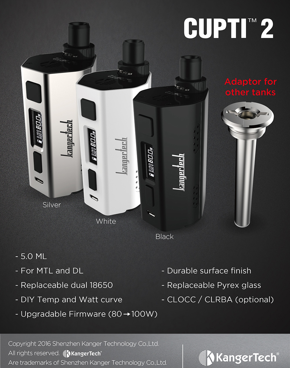 5.0ML Tank Kapasitesi ile gün boyu rahat kullanım sağlayan başlangıç setidir,kangertech markasının yeni bir ürünü olan Cupti 2 cihazı 2017 model olmakla beraber bir çok starter kit'ten daha uygun fiyat ve daha uygun donanıma sahiptir. 80-100W gücünde olan Kangertech Cupti 2 cihazı gün boyu kullanım için uygun şekilde dizayn edilmiş bir üründür. Yeni esigaraya başlayanlar için en uygun cihaz diyebiliriz. |