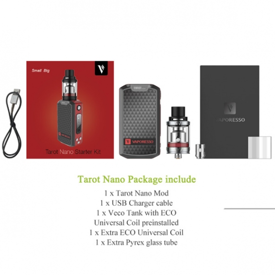 Vaporesso Tarot Mini 80W tam bir mod elektronik sigara kiti olarak karşımızdadır. Eğer ekstra şarjlı pil almak istemiyorsanız veya şarjlı pillere likit sızması,pillerin eskimesi veya benzeri sorunlarla yüzleşmek isytemiyor ve keyifli bir elektronik sigara deneyimi yaşamak istiyorsanız Vaporesso Tarot Mini 80W’ı tercih edebilirsiniz. Vaporesso Tarot Mini 80W aynı zamanda son derece küçük ve kullanışlı bir elektronik sigara modeli olup,gövdesi üzerinde bulunan düğmeleri ile tam kontrol sağlar ve de kutu içeriğindeki yedek parçalar size kolay ve rahat bir kullanım sunar.