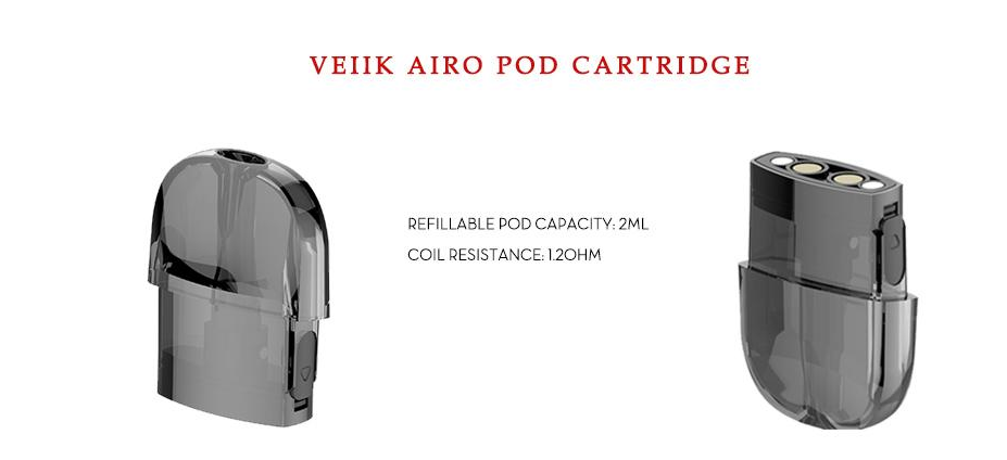 Kartuş 2 ML Salt Likit Kapasitesine Sahiptir. Pod Kartuş 1.2 Ohm Dirençli Coil Yapısına Sahiptir. VEIIK Airo,Coil Sarımına İzin Veren Bir