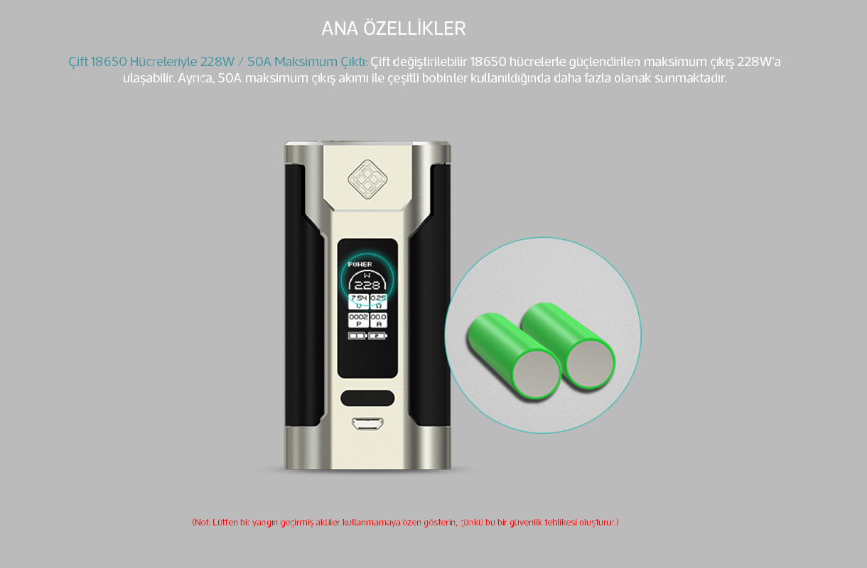 - Paket içerisinde garanti belgesi vardır fakat resmi olarak ithalatı olmadığı için Türkiye de distribütörü yoktur ve herhangi bir geçerliliği yoktur. Firma garantili olarak gönderilmektedir satın almış olduğunuz ürünlerde 7 gün iade değişim hakkınız bulunmaktadır. İade değişim şartlarını yukarıda belirtilmiştir. 7 günden sonra bozulan sorun yaratan ürünler için maalesef iade/değişim şansınız bulunmamaktadır. Kişisel olarak tamir ettirmekle yükümlüsünüz. Alışveriş yapan tüm kullanıcılarımız bunun farkında olarak alışveriş yapmalıdırlar. Türkiye deki tüm e-sigara şirketlerinde maalesef durum böyledir. Bi garantileri bulunmamaktadır ilgili markaların.