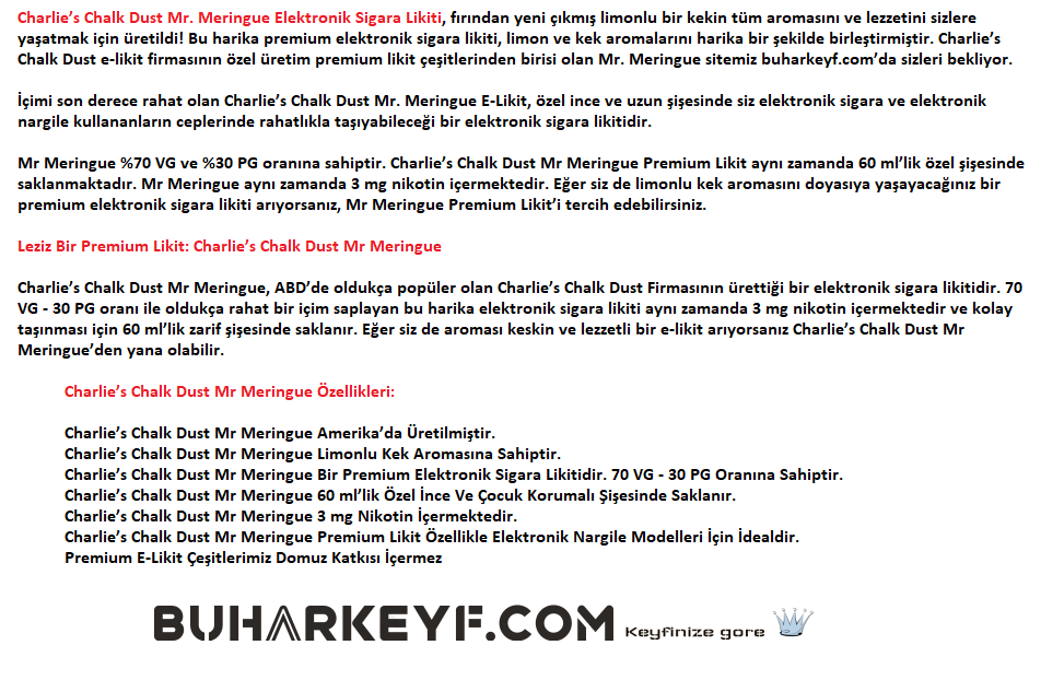 Charlies Chalk Dust - Mr Meringue (Limonlu Kek) 60 ML